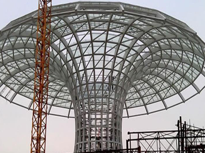 二、球形网架结构因其结构新颖,受力合理,自重轻、用钢量低等优点。如大型体育场馆球形贵阳螺栓球网架、公共场馆球形网架、电厂贵阳螺栓球网架、水泥工业球形网架、仓储物流球形网架、贵阳干煤棚工业球形网架、贵阳收费站贵阳加油站球形网架、展览中心、影剧院、商场、航站楼、候车厅、工厂贵阳车间、仓库、电视塔等球形螺栓球节点网架。国内球形网架结构主要分为:贵阳焊接球节点网架及螺栓球节点网架两种。螺栓球节点网架其构件工厂内加工量较大,现场安装便捷,适用于现场工期紧,贵阳施工条件、用电量受制约,网架形状复杂、贵阳杆件定位困难的异形结构。螺栓球节点球形网架系统基本由贵阳杆件、螺栓球、支撑支座等组成。按照节点形式可分为交叉贵阳桁架体系、四角锥体系、三角锥体系等。支撑方式多为固定支座支撑。对于大面积、大跨度及有特殊受力或伸缩要求的网架结构可采用橡胶支座、滑移支座、球铰支座等支撑形式,以满足结构自身的受力稳定、均衡,便于内力释放等设计要求。